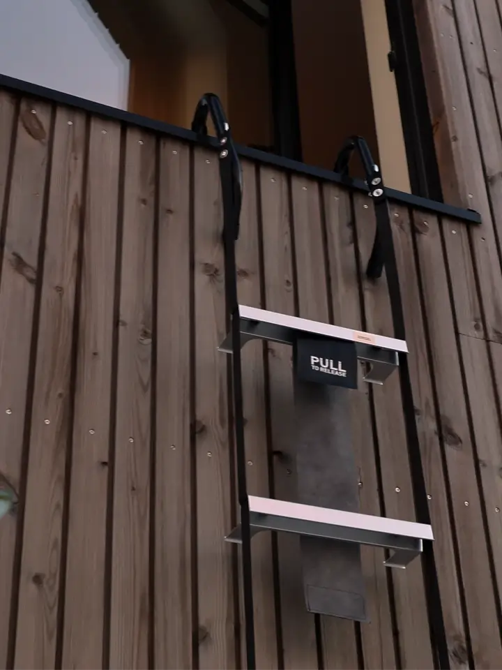 Skulle det oppstå en brann, og den primære rømningsveien er blokkert, kan evakuering med brannstige via et vindu eller en balkong være redningen.