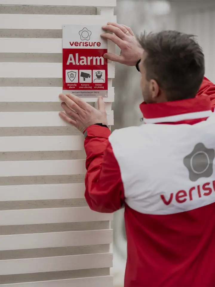 Verisure klistremerker og alarmskilt festes godt synlig på dører, vinduer og fasade. Merkene er en tydelig advarsel om at denne boligen er sikret med overvåket boligalarm. Her vil kamera ta bilde, sirene og eventuelt ZeroVision utløses, og vekter og politi ankomme raskt, dersom tyven prøver seg. Når tyvene ser en bolig med et slikt merke, forstår de at det er for stor risiko å prøve seg.